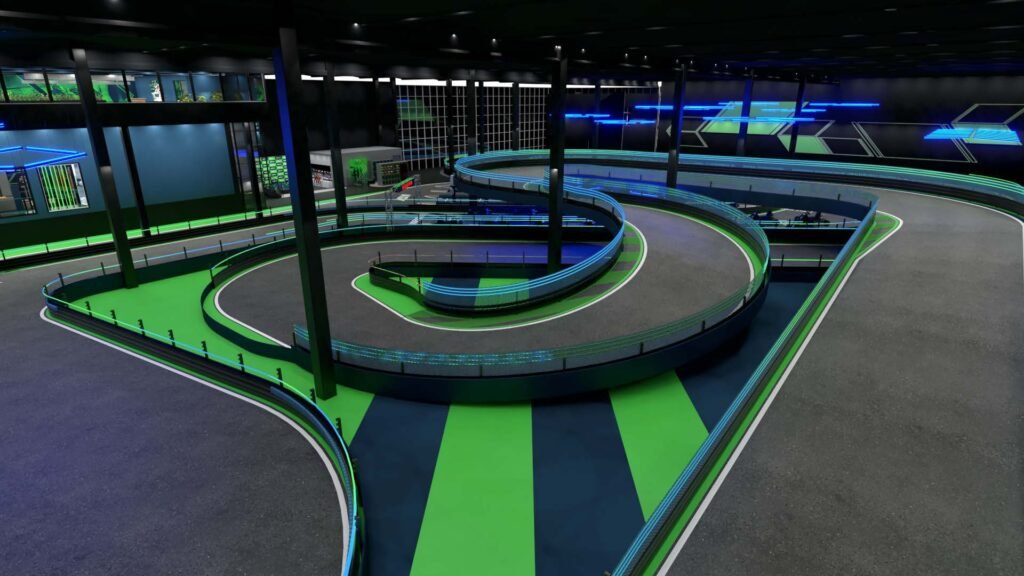 Pista multinível, karts elétricos e uma experiência imersiva dentro de um centro completo de entretenimento. Um projeto inédito no país, inspirado nos maiores complexos internacionais